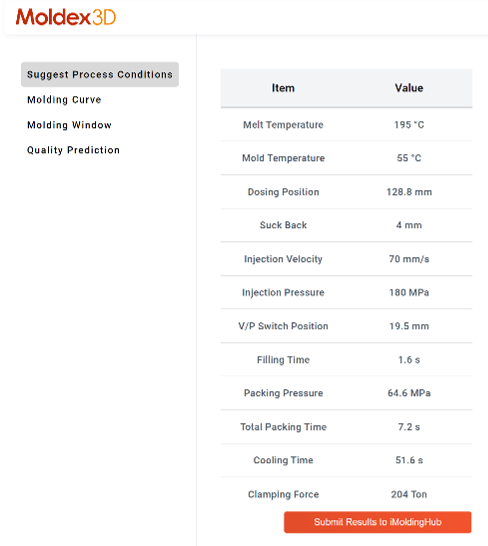 In una fase preliminare di progetto quello che necessito conoscere sono le principali grandezze, come tempo e velocità di iniezione, pressioni di iniezione e mantenimento, tonnellaggio, oltre che ritiro, deformazione temperature e naturalmente tempo ciclo.
