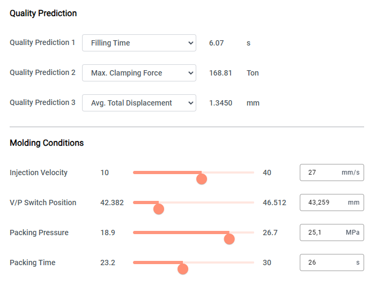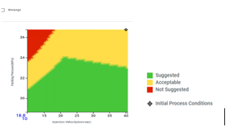 Otterrò una indicazione dei parametri ideali di processo, oltre a delle finestre di stampaggio che mi consentono di capire rapidamente se i parametri che posso indicare daranno un risultato buono o meno.